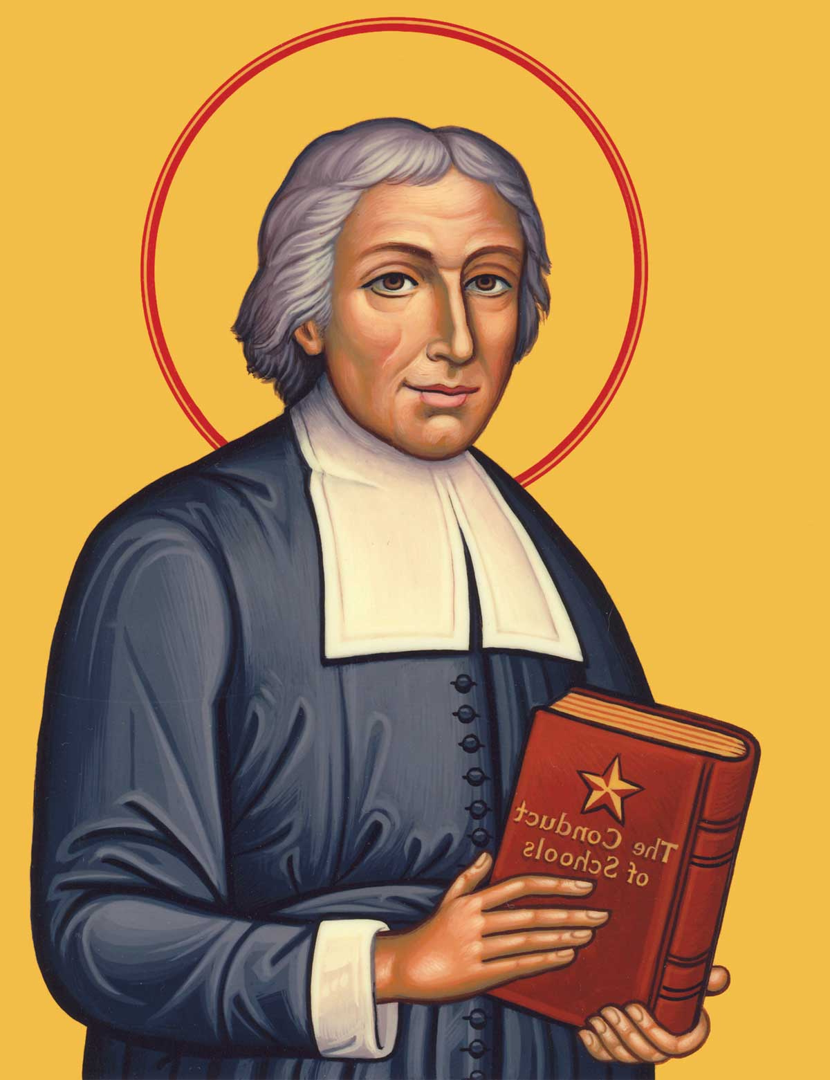 Il a fondé cette Congregation des Frères des Ecoles Chrétiennes en 1678. Harrasé par une vie faite d'austérités et de labeurs, Il mourut à Saint Yon, près de Rouen le 7 avril 1719, Béatifié le 19 février 1888